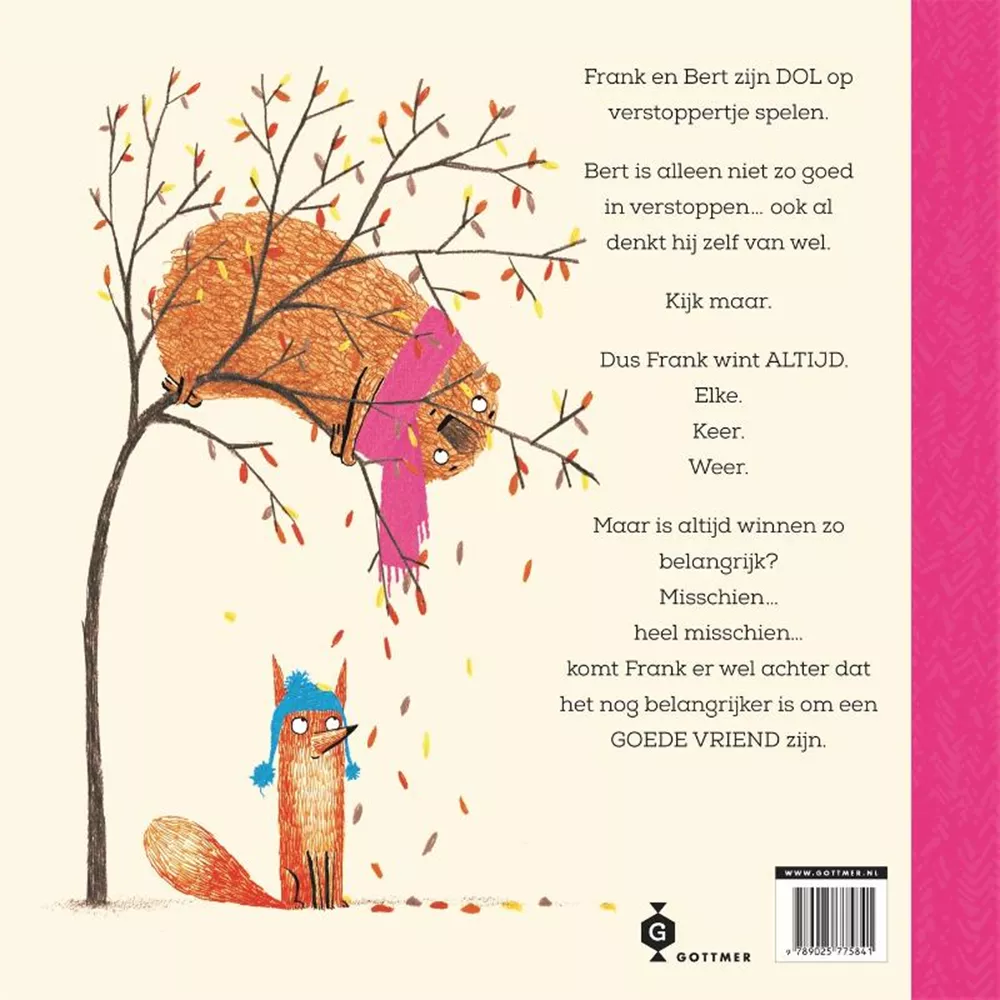 De slimme Frank spreekt de lezer op licht betweterige toon aan en vertelt ze liefdevol over zijn allerbeste maar beetje domme vriend Bert. Elke dag spelen de twee verstoppertje. Frank is er erg goed in, Bert... minder. De grote beer verstopt zich altijd wel achter een dun boompje of in een te kleine grot. Bert wil dolgraag winnen met verstoppertje spelen, maar het lukt hem nooit. Dus laat Frank, zoals het een goede vriend betaamt, Bert een keer winnen. Hij doet net alsof hij hem niet kan vinden. Nu Bert gewonnen heeft, mag hij Frank gaan zoeken. En die zal wel eens voordoen hoe je je echt goed moet verstoppen. Maar dan blijkt dat Bert zich misschien toch niet zo makkelijk laten foppen door zijn slimme vriend...